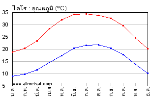 | ค่าเฉลี่ยรายเดือนของอุณหภูมิสูงสุดและต่ำสุดประจำวัน