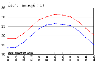 | ค่าเฉลี่ยรายเดือนของอุณหภูมิสูงสุดและต่ำสุดประจำวัน