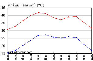 | ค่าเฉลี่ยรายเดือนของอุณหภูมิสูงสุดและต่ำสุดประจำวัน