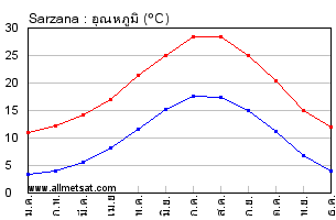 | ค่าเฉลี่ยรายเดือนของอุณหภูมิสูงสุดและต่ำสุดประจำวัน