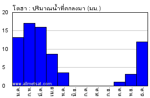 | จำนวนวันที่มีปริมาณน้ำที่ตกลงมา ≥ 1 มิลลิเมตร |