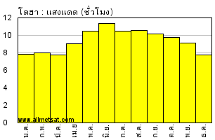 | จำนวนเฉลี่ยรายเดือนของชั่วโมงที่แสงแดดส่องต่อวัน |