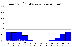 | จำนวนวันที่มีปริมาณน้ำที่ตกลงมา ≥ 1 มิลลิเมตร |