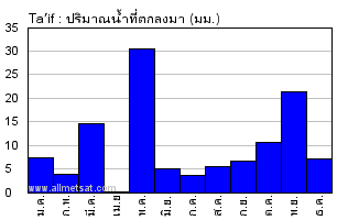 | จำนวนวันที่มีปริมาณน้ำที่ตกลงมา ≥ 1 มิลลิเมตร |
