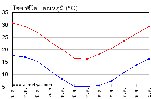 | ค่าเฉลี่ยรายเดือนของอุณหภูมิสูงสุดและต่ำสุดประจำวัน