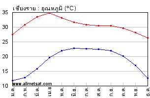| ค่าเฉลี่ยรายเดือนของอุณหภูมิสูงสุดและต่ำสุดประจำวัน