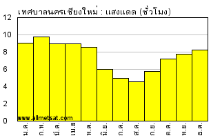 | จำนวนเฉลี่ยรายเดือนของชั่วโมงที่แสงแดดส่องต่อวัน |