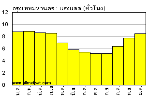 | จำนวนเฉลี่ยรายเดือนของชั่วโมงที่แสงแดดส่องต่อวัน |