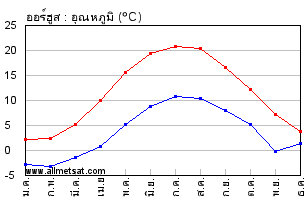 | ค่าเฉลี่ยรายเดือนของอุณหภูมิสูงสุดและต่ำสุดประจำวัน