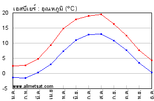 | ค่าเฉลี่ยรายเดือนของอุณหภูมิสูงสุดและต่ำสุดประจำวัน