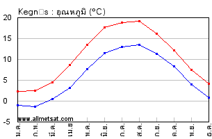 |  | ค่าเฉลี่ยรายเดือนของอุณหภูมิสูงสุดและต่ำสุดประจำวัน