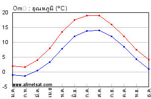 | ค่าเฉลี่ยรายเดือนของอุณหภูมิสูงสุดและต่ำสุดประจำวัน